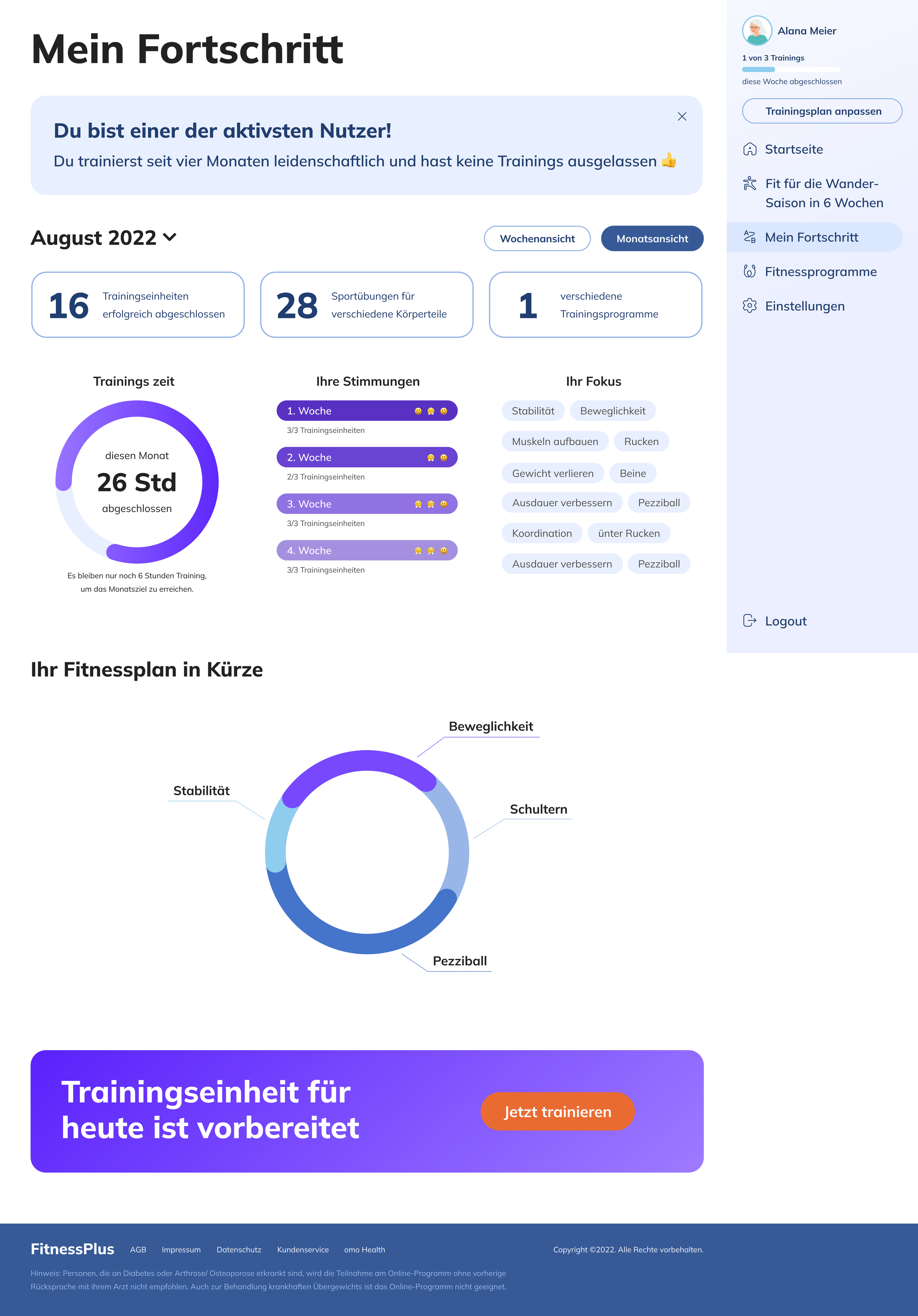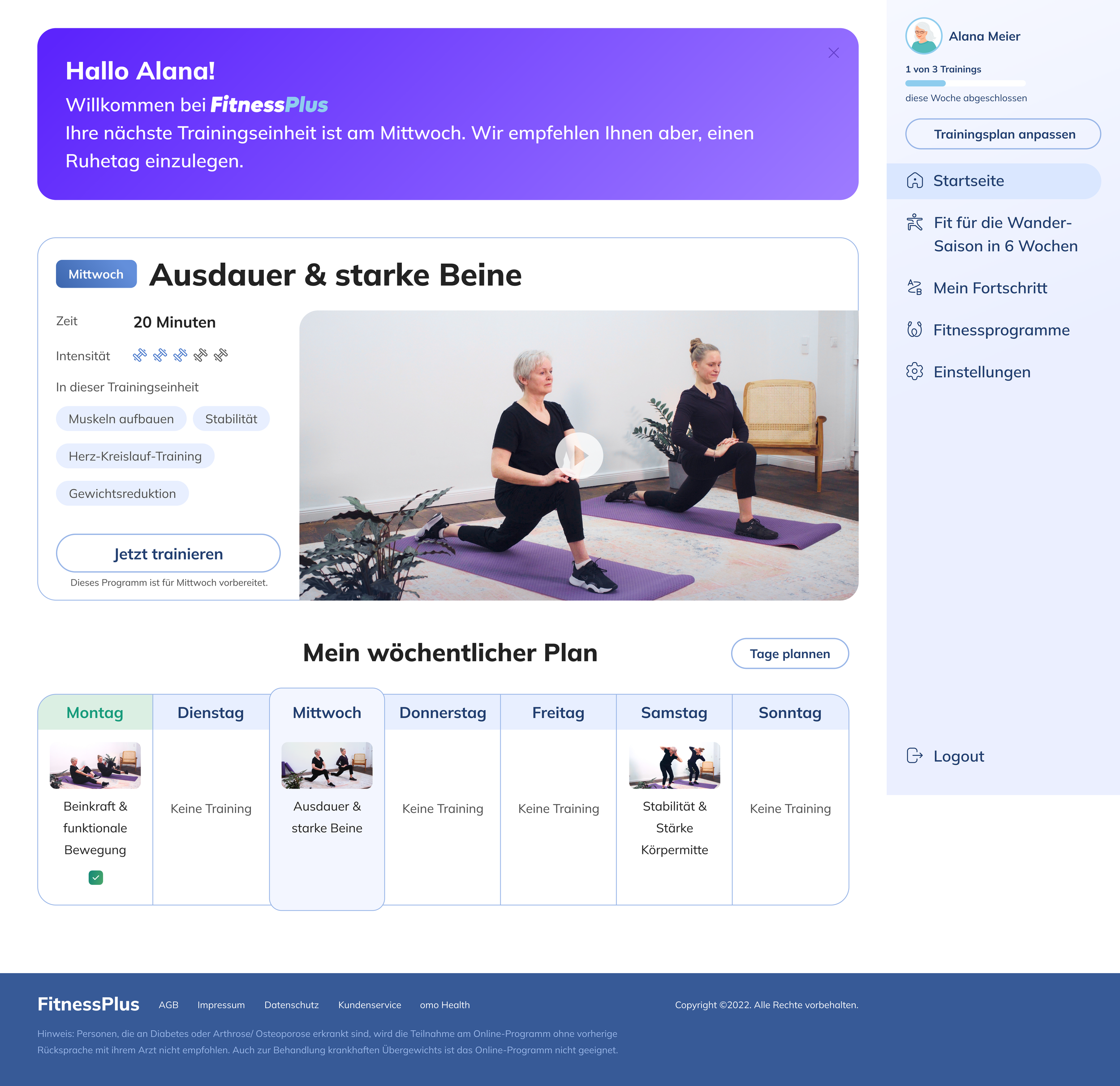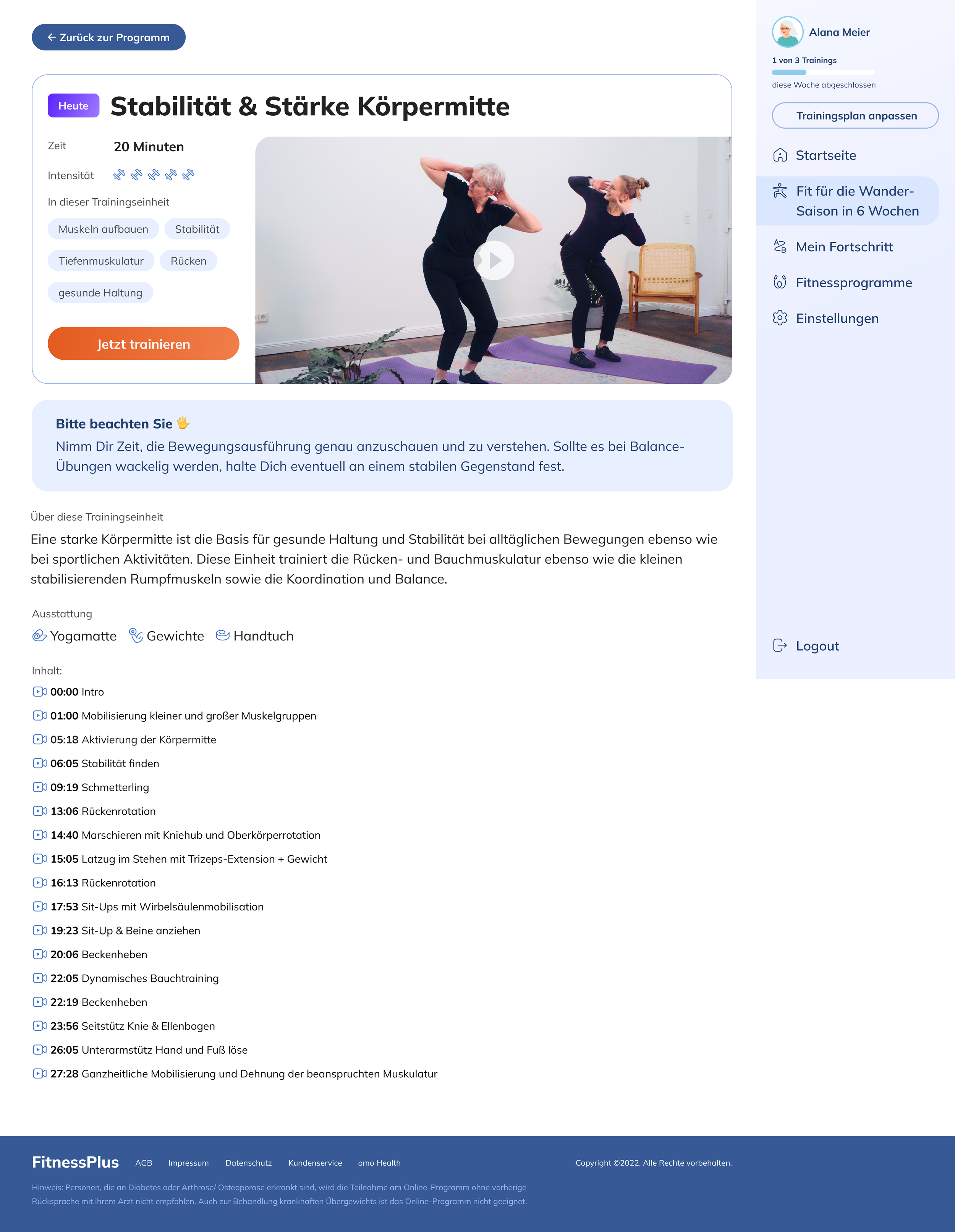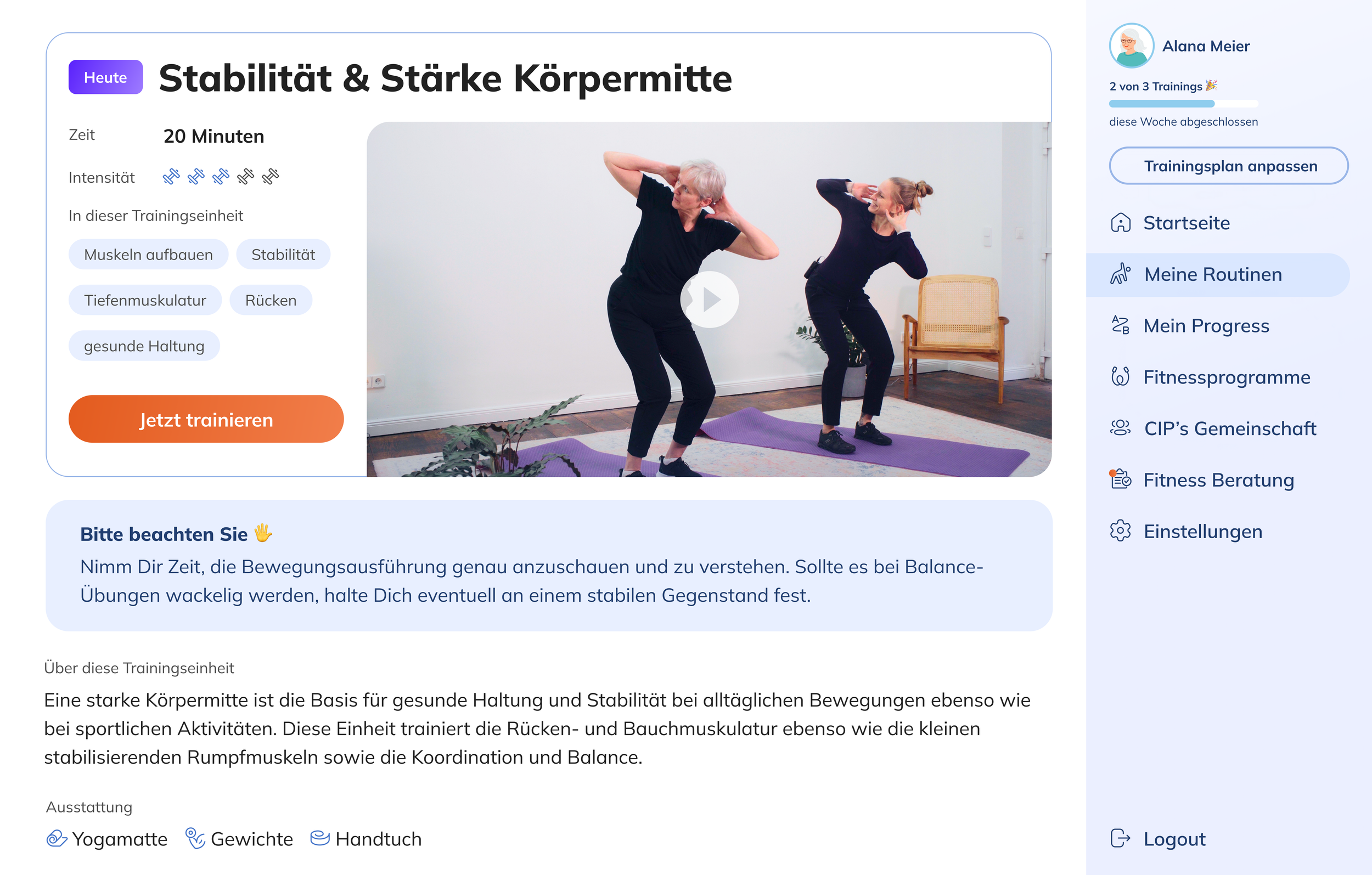 This project was created together with a professional fitness trainer. Therefore, exercises and texts are adapted for the target audience aged 50+.